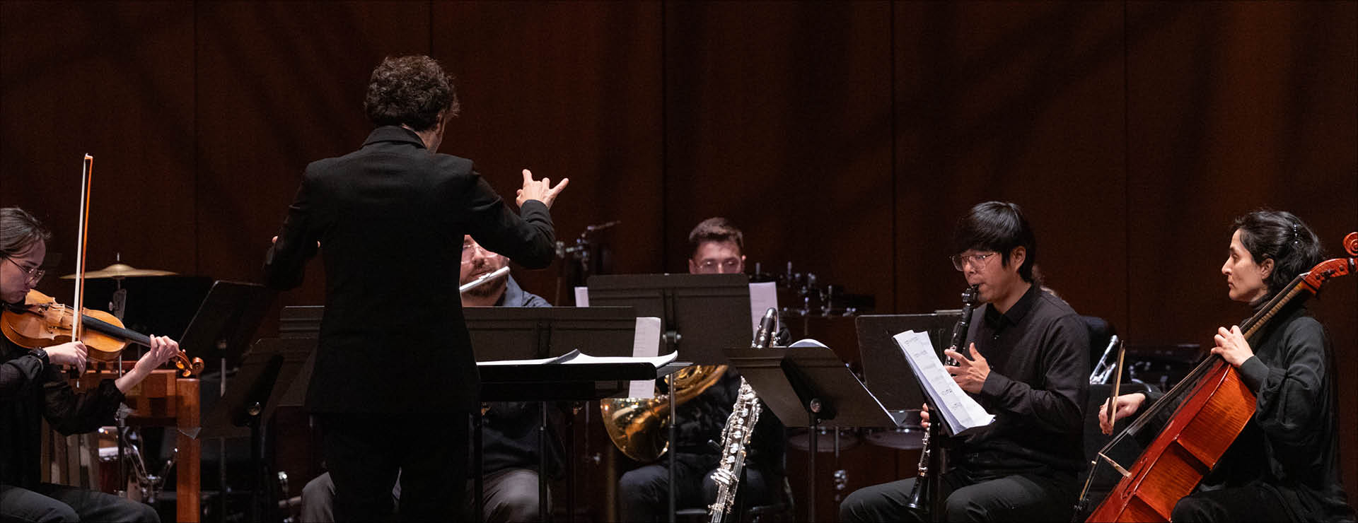 Featuring six contemporary works that explore transformation, tension, and reflection. At the center is a new song cycle by MSU composer David Biedenbender for tenor, violin, cello, and percussion—an introspective and visceral work rooted in poetic narrative. The program also includes pieces by Raven Chacon, Mary Kouyoumdjian, Đuro Živković, David Lang, and Alan Shockley—works that traverse ritual, disquiet, and unexpected rhythmic energy. Conducted by Katherine Kilburn, joined by conductors Zongheng Zhang and Dan Jaggars.