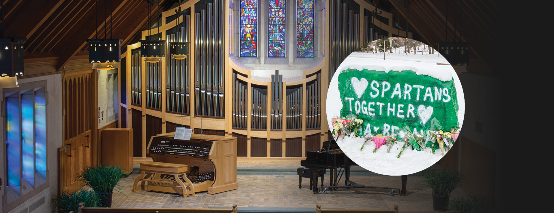 Organ Remembrance is a reflective music event honoring the lives impacted by the tragic campus shooting of 2023. Held in the MSU Alumni Memorial Chapel, the event offers continuous organ music performed by MSU organ students and members of the Lansing Chapter of the American Guild of Organists.