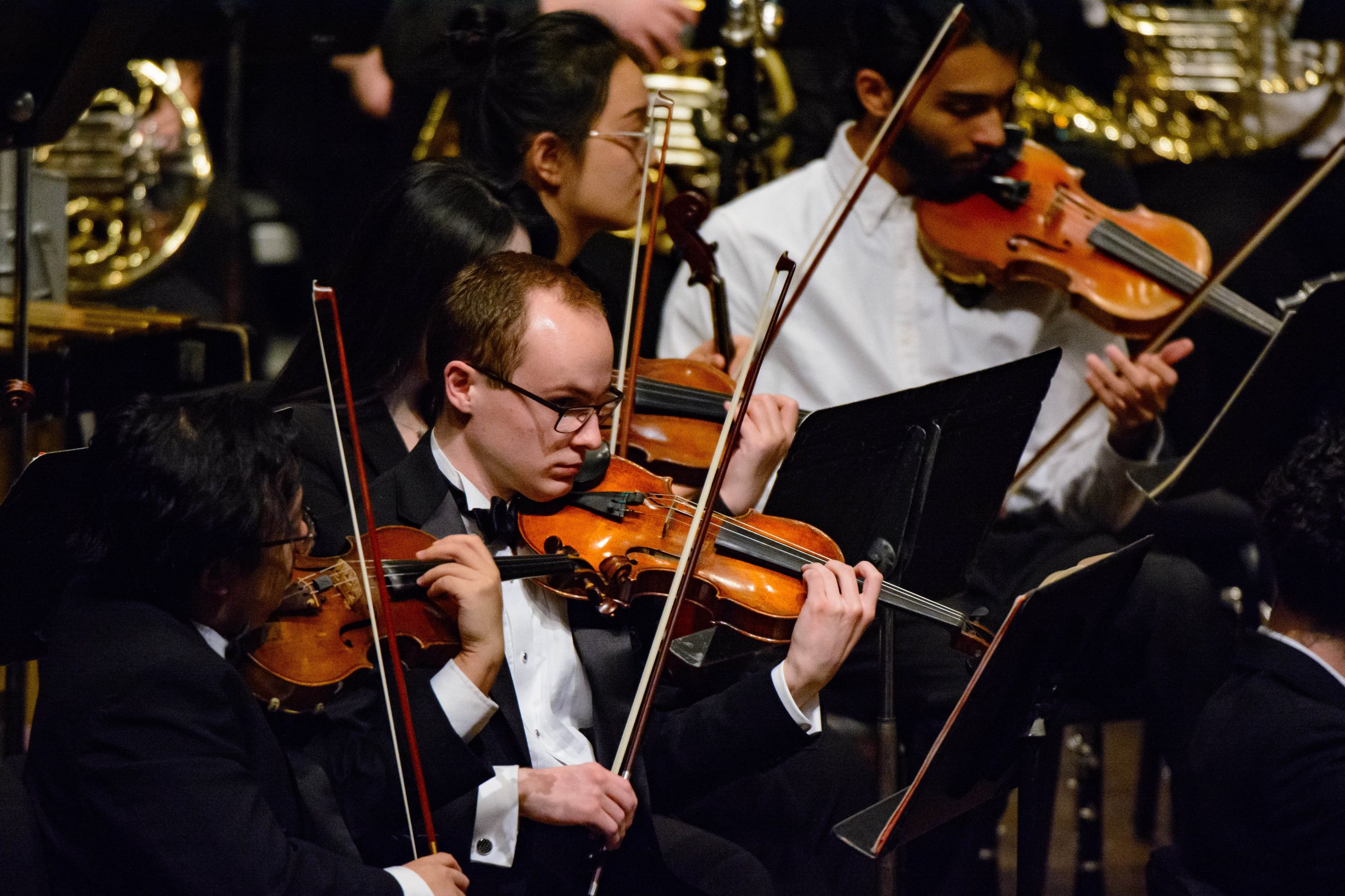 More than 70 instrumentalists of the MSU Symphony Orchestra perform in the annual holiday concert, accompanying choirs in a diverse program of seasonal music.